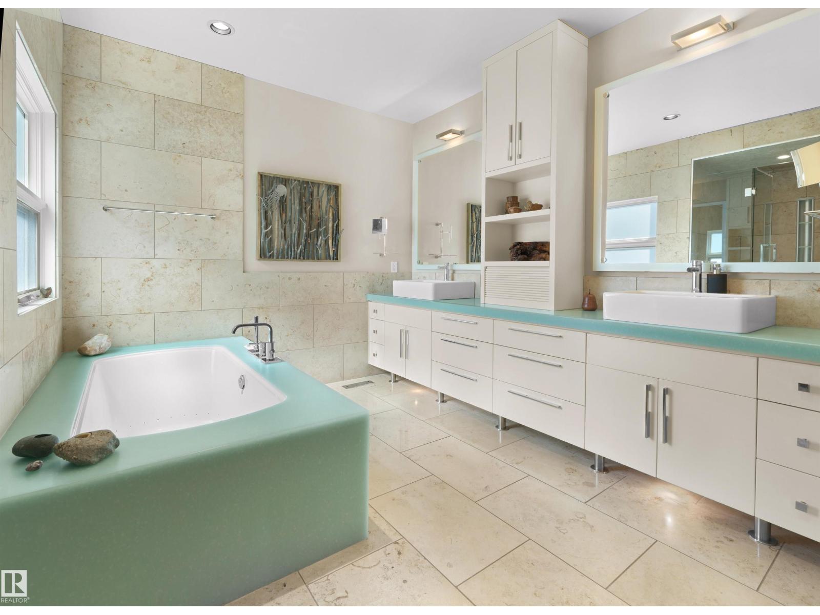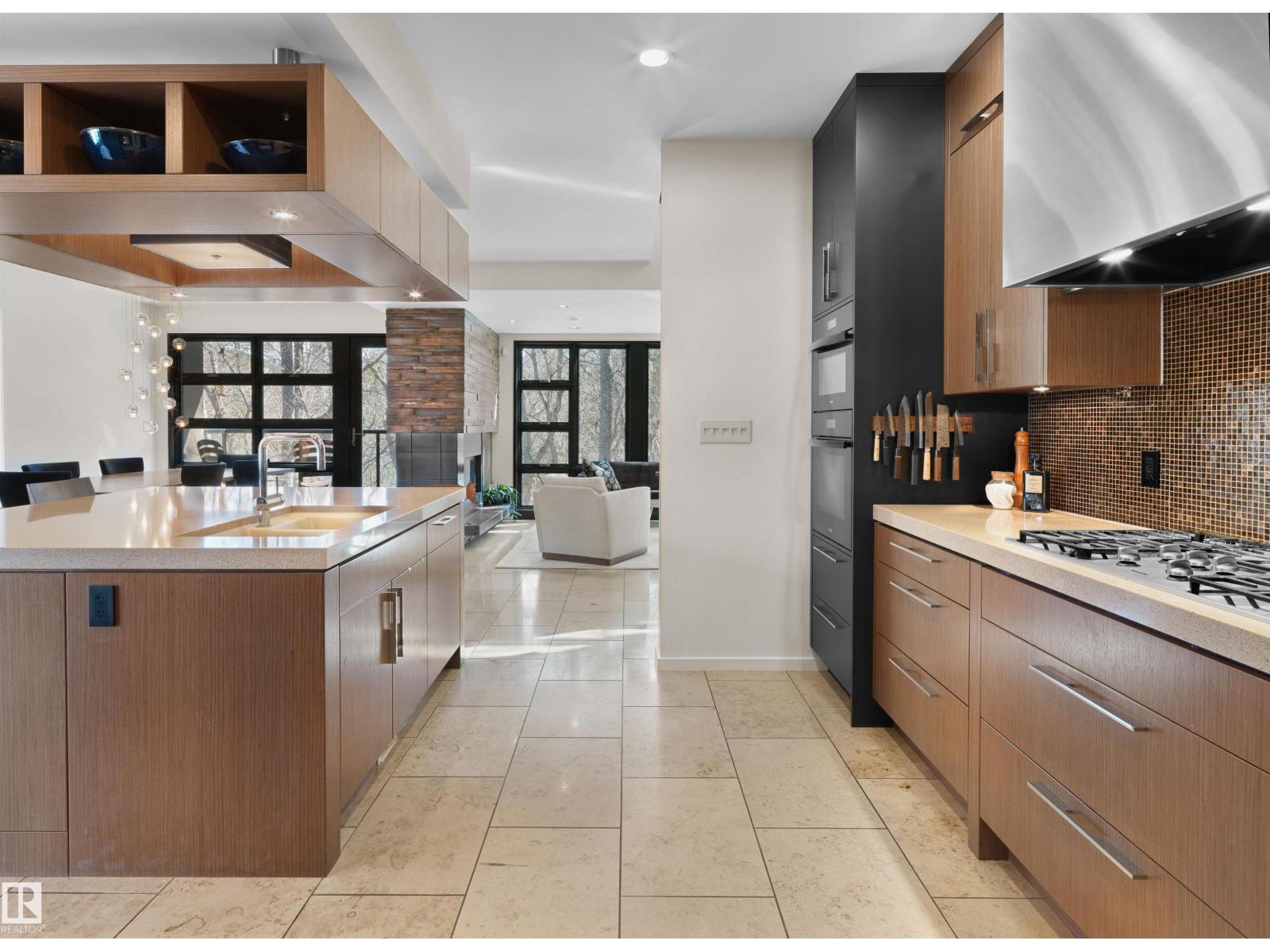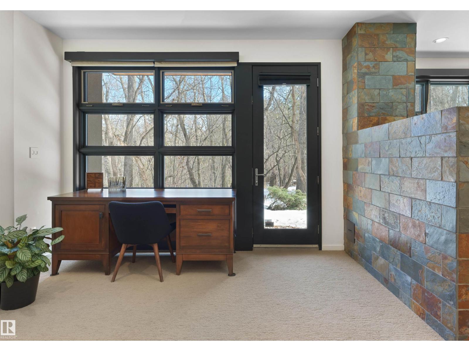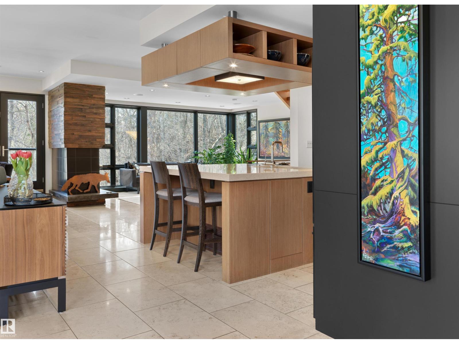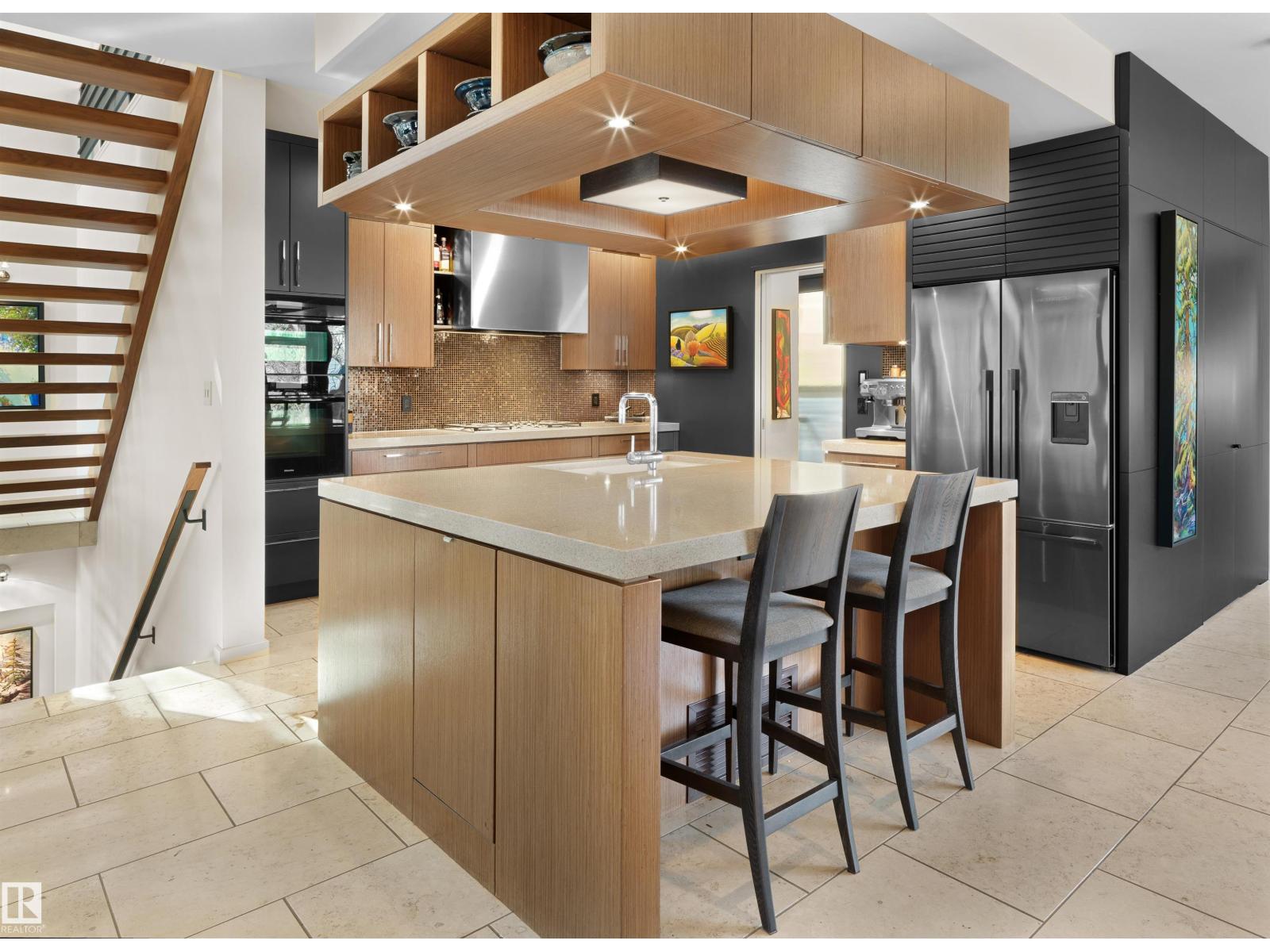 Located at 9651 87th Avenue NW, this home is tucked away at the end of a cul-de-sac, set into the hillside on a double lot and surrounded by Mill Creek Ravine Park on three sides.