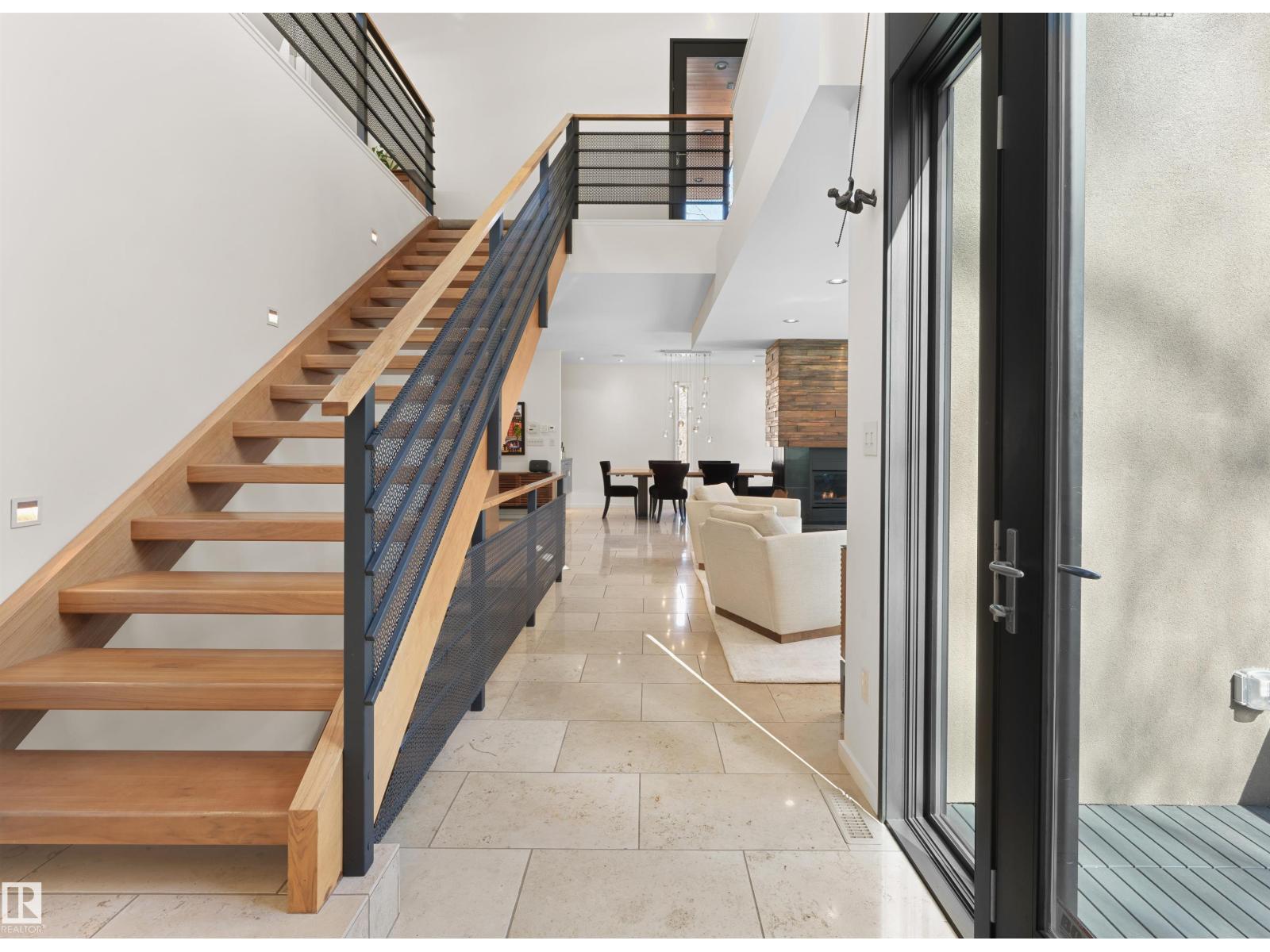 Other luxurious features include in-floor heating on all three levels, air conditioning, and a heated detached double garage.