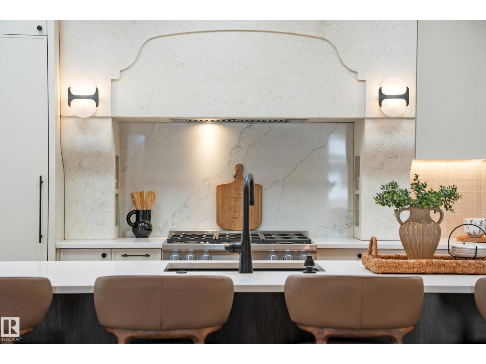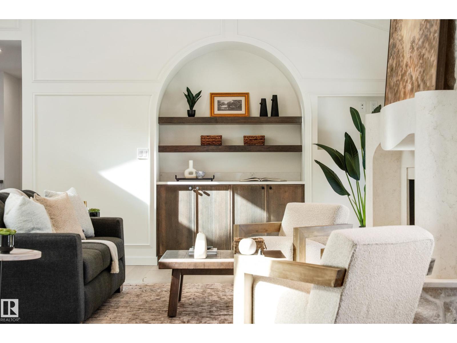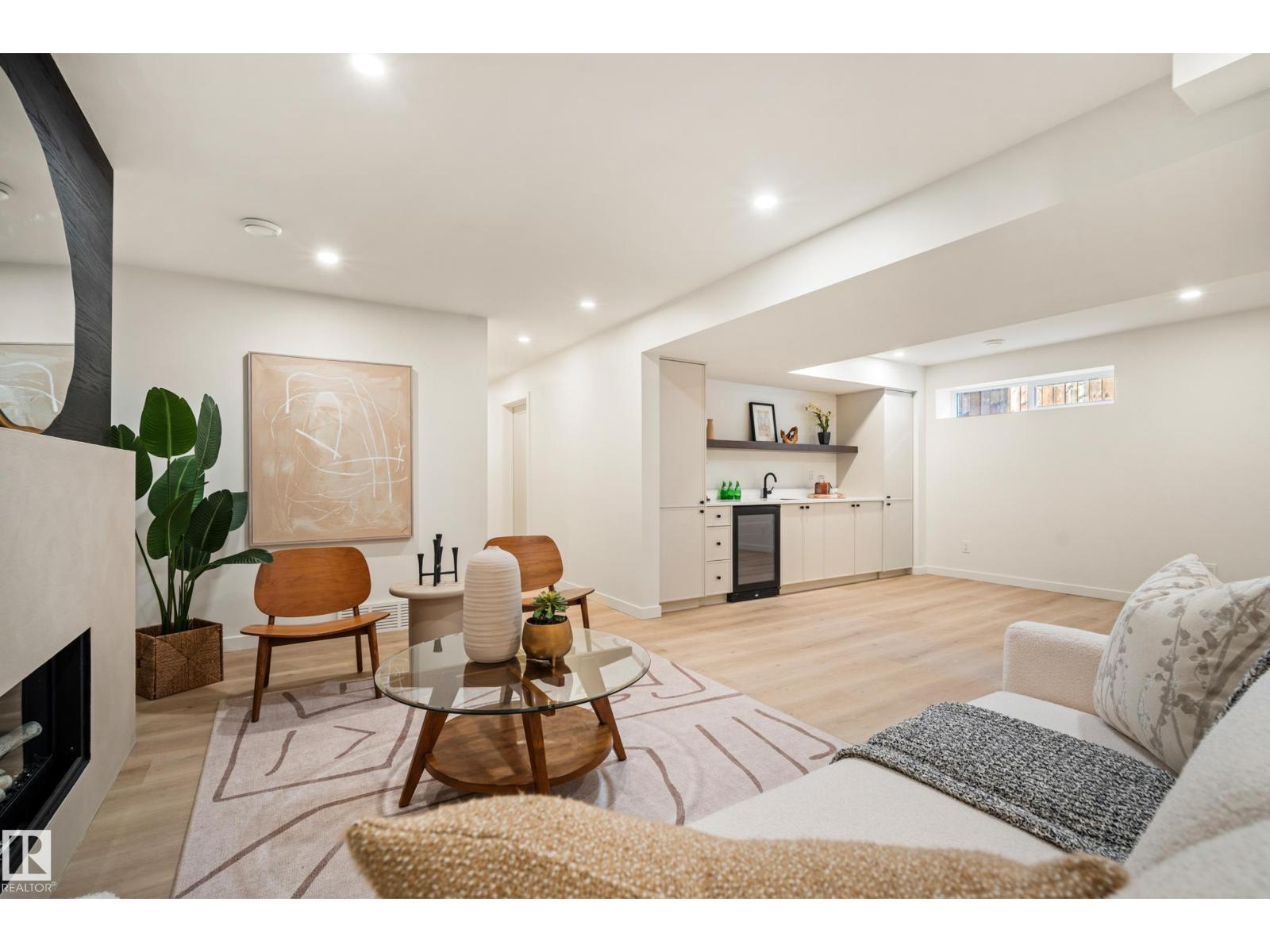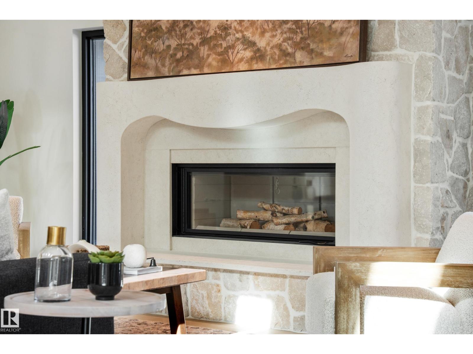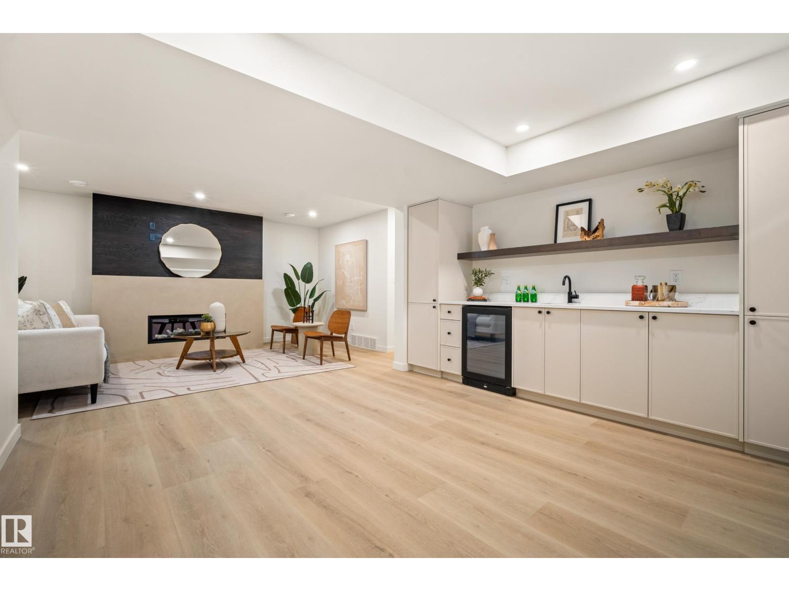 In the basement, a spacious recreation area with a Marquis gas fireplace, beverage centre, and additional bedroom makes it perfect for entertaining.